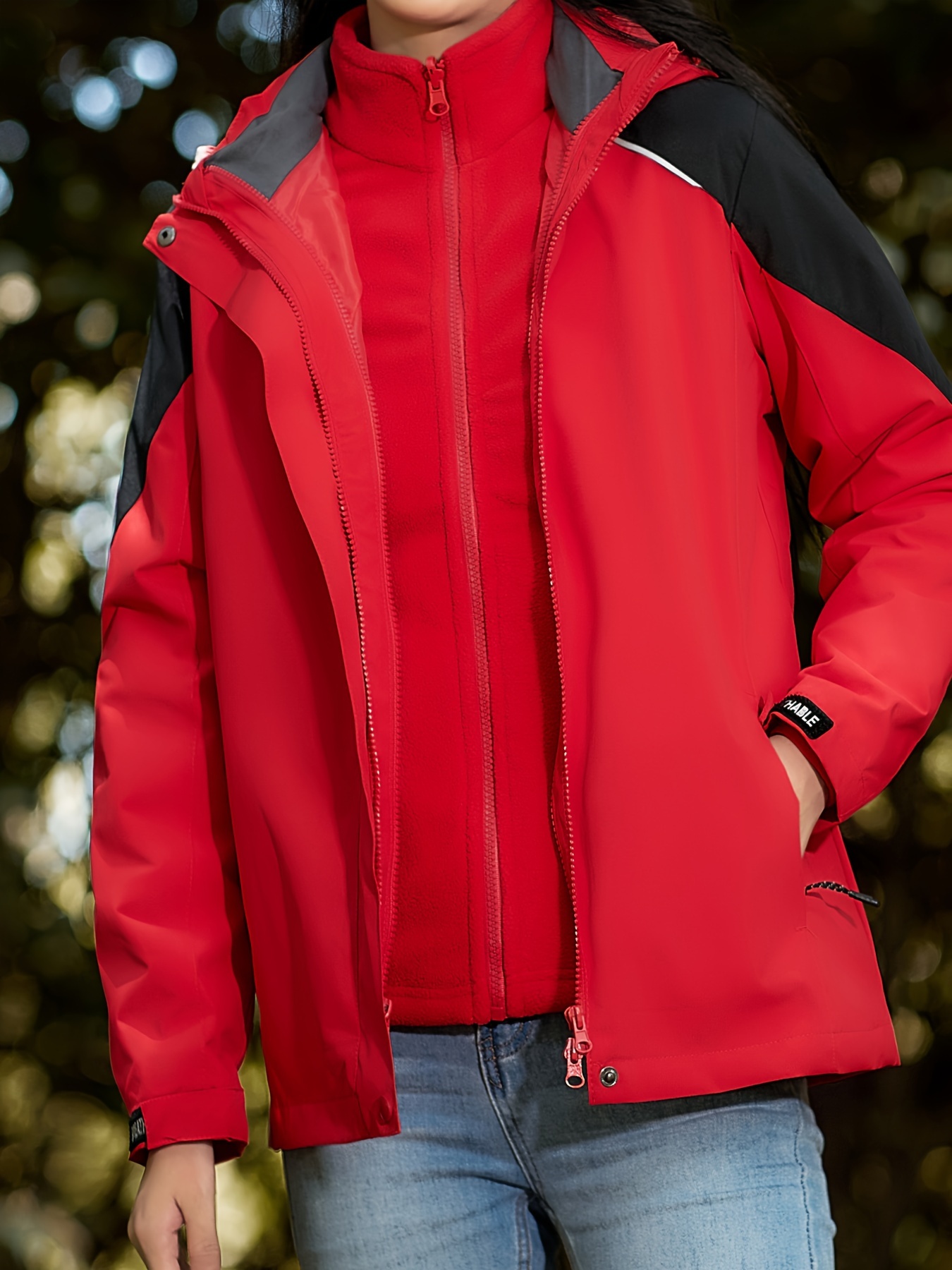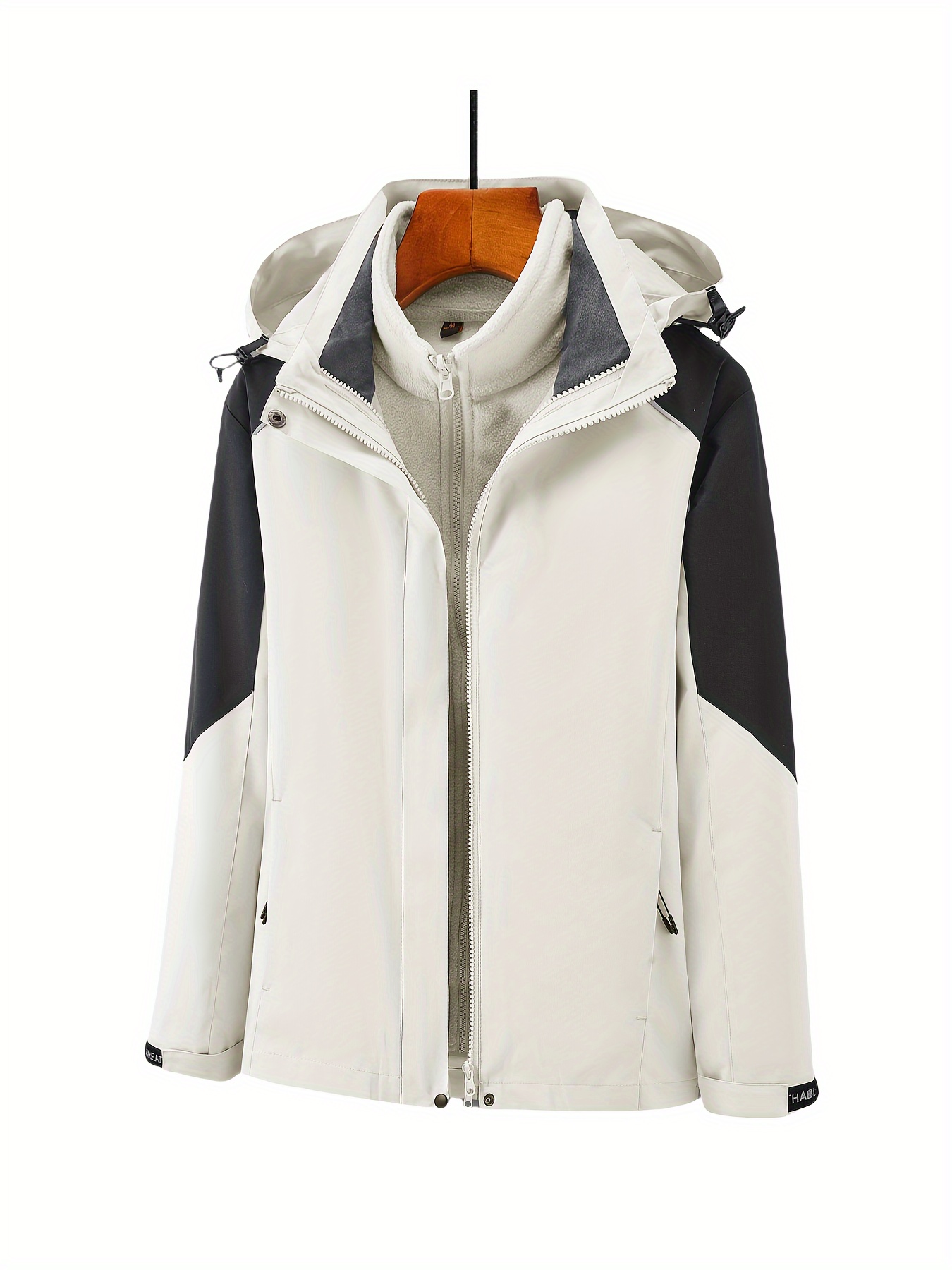 Women's Plus Size Outdoor 3-in-1 Jacket, Colorblock Waterproof Hooded Zip-up Windbreaker, Ideal For Autumn/Winter Hiking & Sports