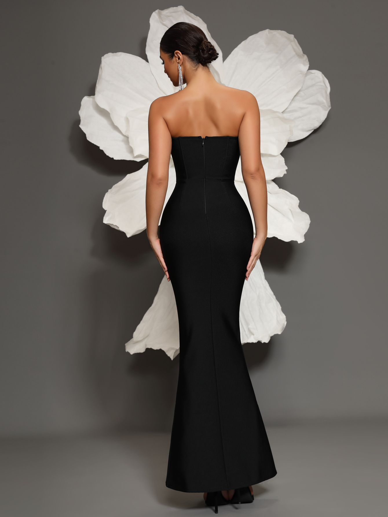 Shiny Sequin Slim Fit Formal Dress, Elegant Strapless Ankle Length Evening Dress For Party & Banquet, Women's Clothing