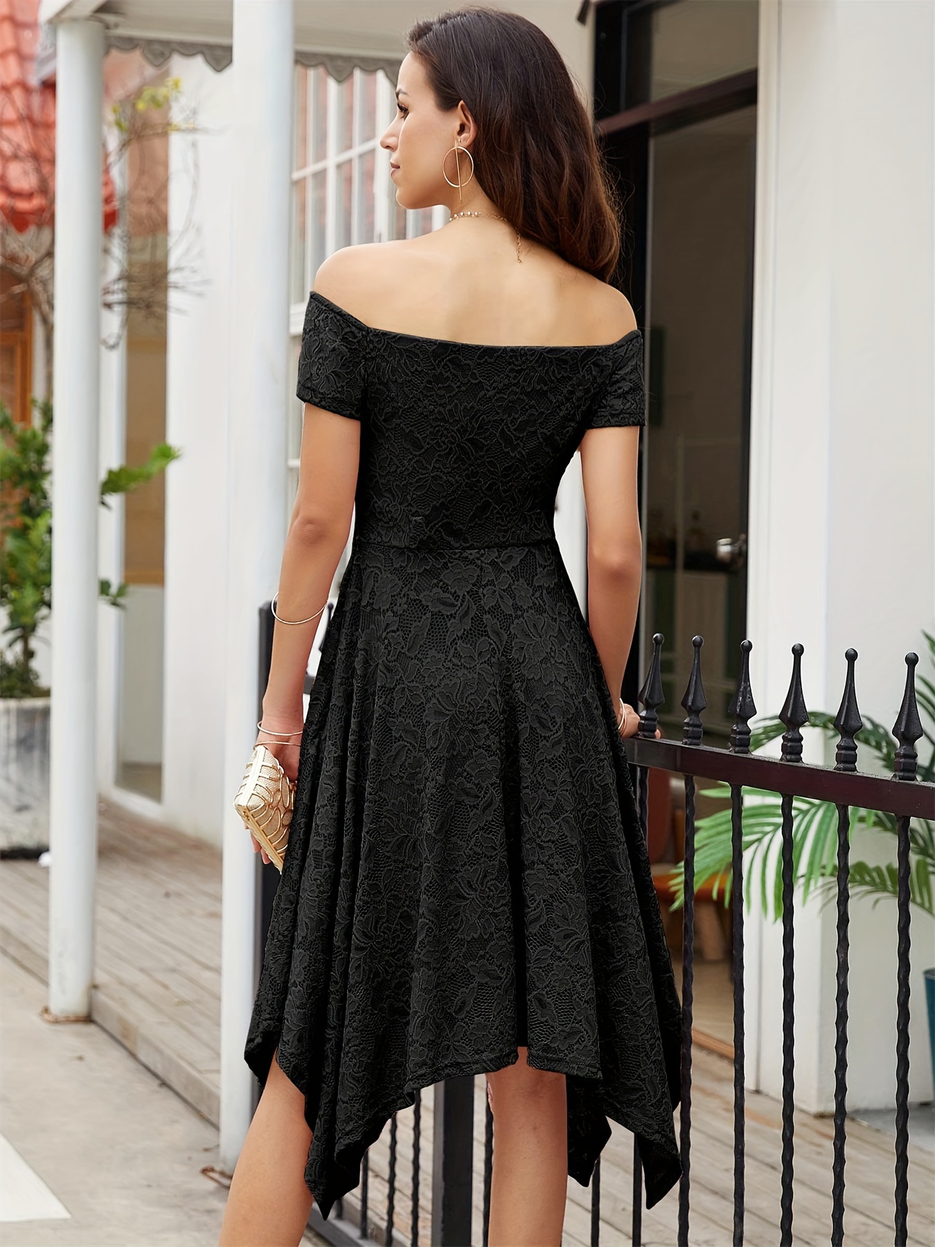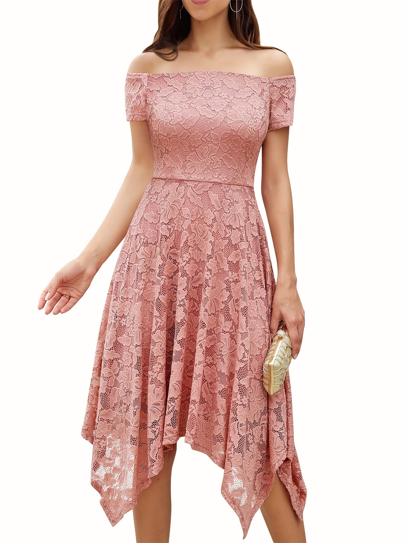 Women's Lace Cocktail Dress Hi-Lo Off Shoulder Bridesmaid Swing Formal Party Dress