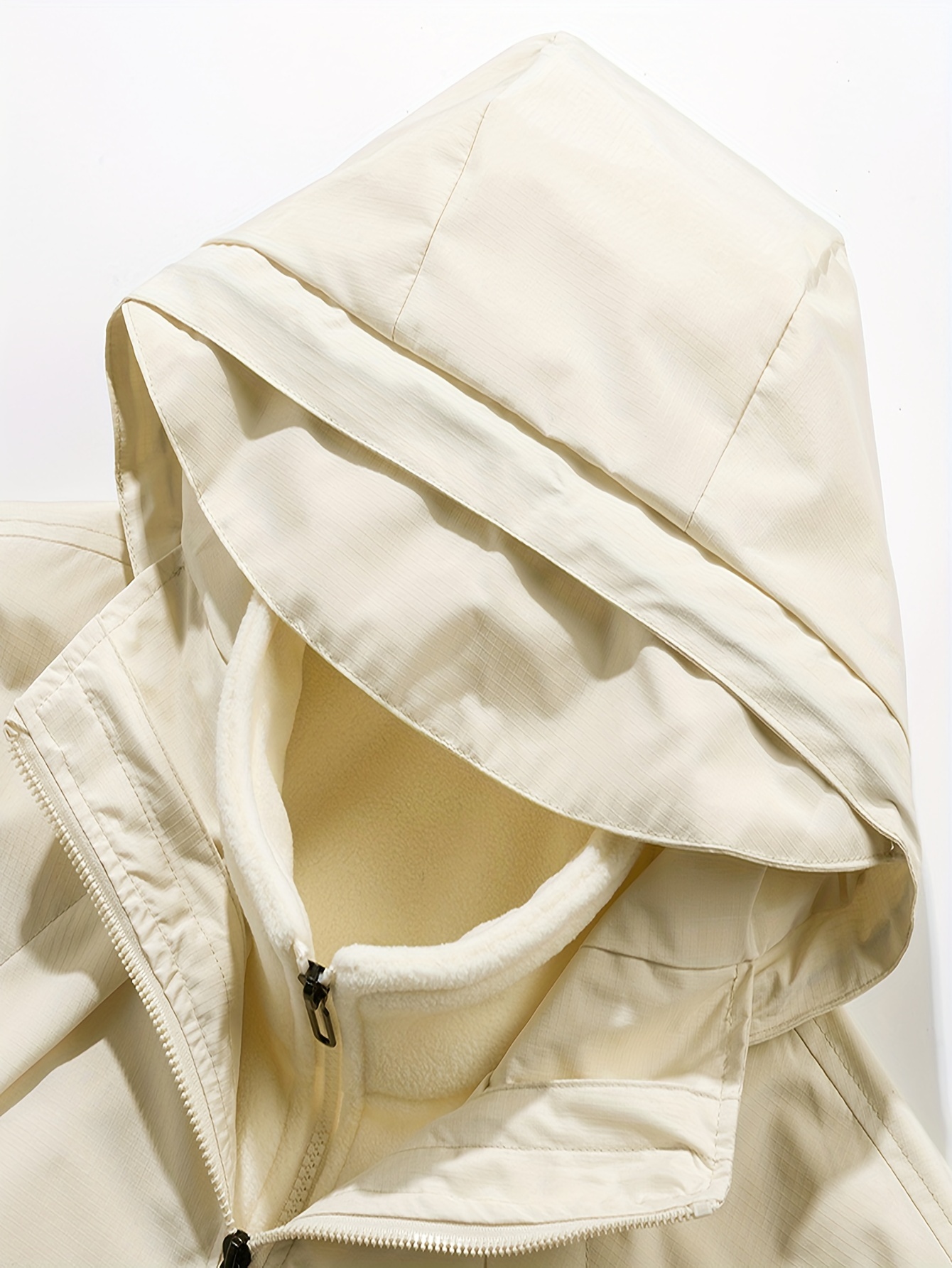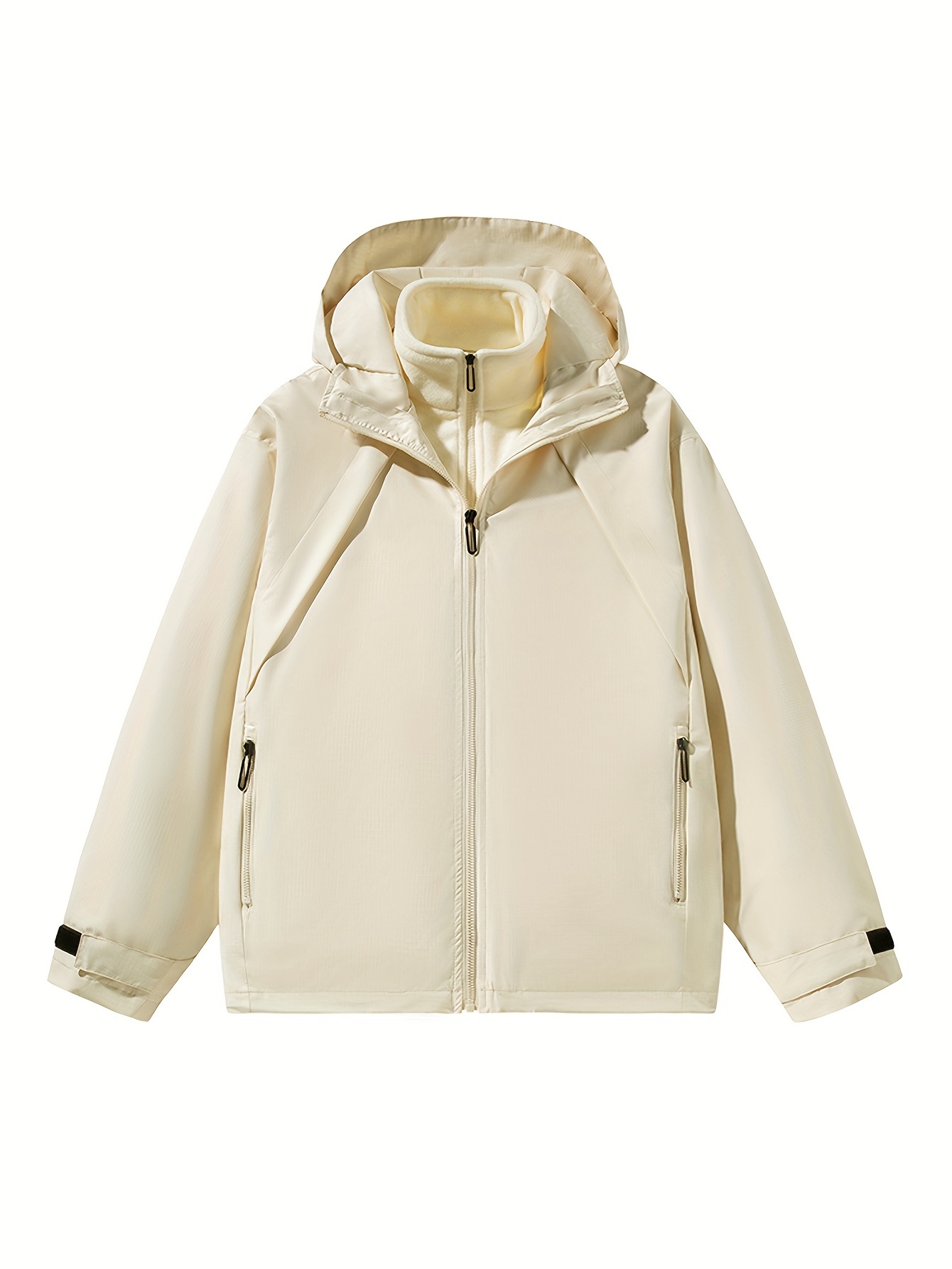 Women's Plus Size 3-in-1 Hooded Windbreaker - Fall/Winter Fashion Jacket with Pockets, Polyester, Long Sleeve, Zip-Up, H-Style