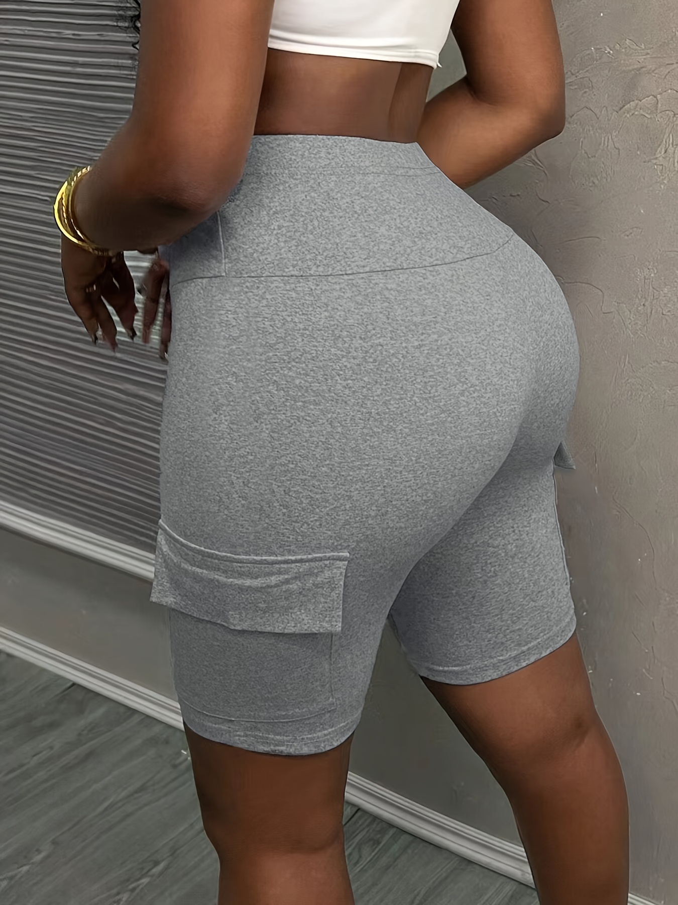 Solid Color High Waist Shorts, Casual Skinny Fit Shorts For Spring & Summer, Women's Clothing