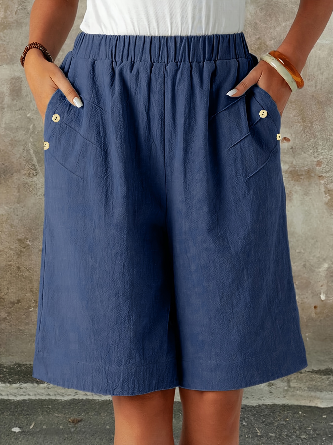 Stylish Slant Pocket Shorts - Elastic Waist, Comfortable, Breathable, Summer & Spring Essential - Women's Elegant Clothing for Casual Occasions